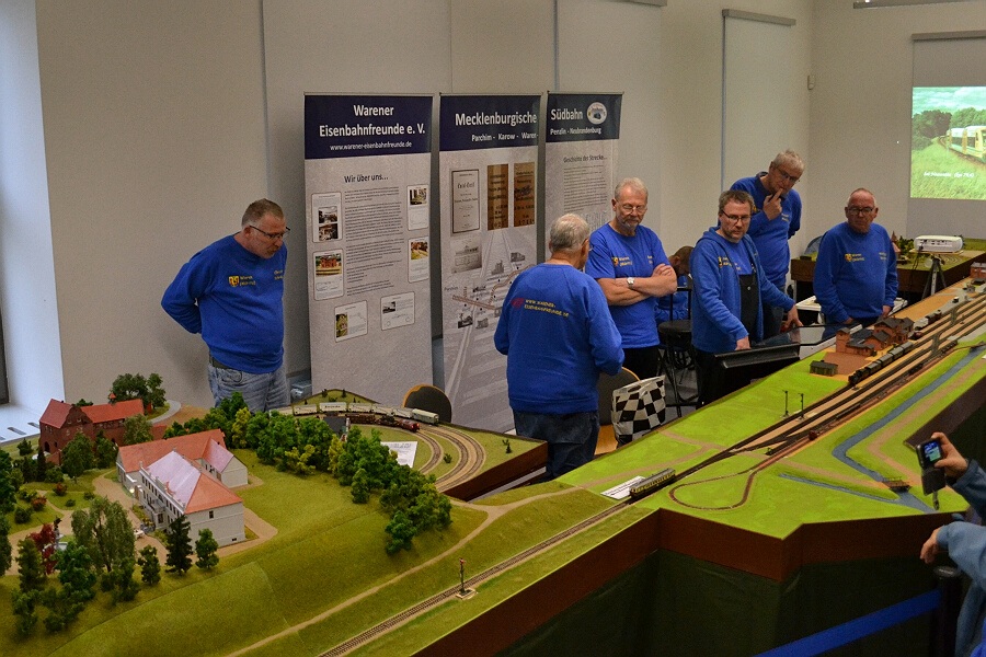 Die Warener Eisenbahnfreunde zeigten erstmals der Öffentlichkeit ihr neue Modellbahnanlage den „Bahnhof Penzlin“ in den 1930‘ er Jahren mit der Alten und Neuen Burg. Die Besucher zeigten sich sichtlich interessiert an der Gestaltung des Bahnhofes und der ausgestellten technischen Sachzeugen, da sie doch ein Teil der Geschichte der Stadt Penzlin wiederspiegeln. Herr Peter Latzel, ein ehemaliger Penzliner Bürger, rundete mit der Darstellung von Dokumenten, technischen Zeichnungen sowie einem Diavortrag rund um die Mecklenburgische Südbahn den Erfolg unserer gemeinsamen Ausstellung ab.